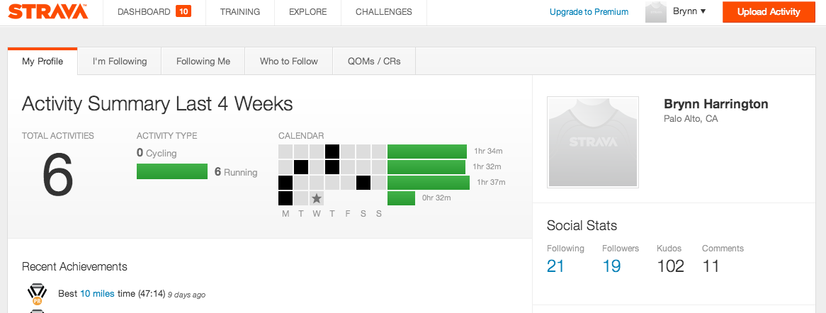 Maybe I’m just a late adopter, but a few years later, my tune has changed. I now routinely track my workouts (haven’t advanced to sleep, food or mood yet), and I’m convinced that I work harder when I’m recording what I’m doing. I primarily use Strava, but there are tons of options in this space (Runkeeper, Fitbit, Fuelband, just to name a couple). For me, here are the big advantages of tracking exercise: