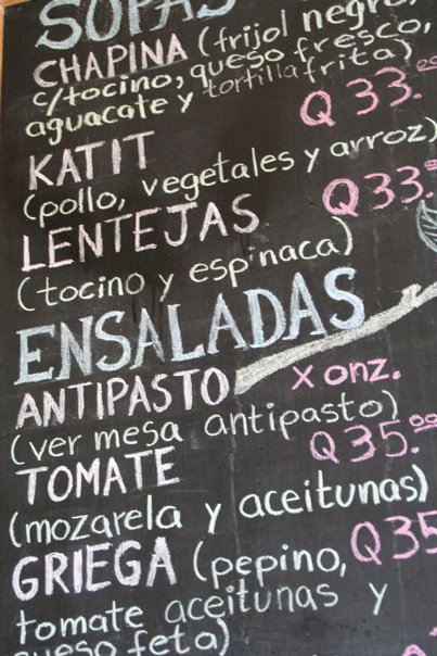 • Saturday or Sunday, one of us takes the lead on planning a menu for that week.  We plan four meals, assuming that we’ll either eat out or eat leftovers one night during the week.  We have a chalkboard in the kitchen where we write down what’s on the menu each day of the week