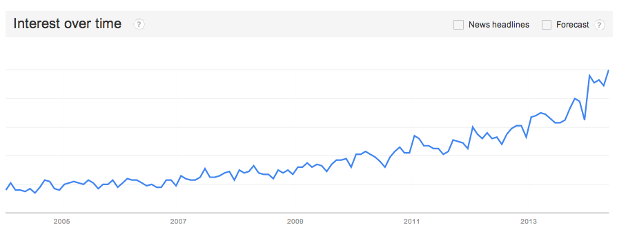Rooted in Buddhism and other Eastern philosophies, meditation has been on the rise in the Western world for the past few years. In the last 10 years, “mindfulness” has exploded as a Google search term (see below), and Amazon’s shelves are stocked with books on the topic. Oprah has teamed up with Deepak Chopra to create the 21-Day Meditation Experience, meditation rooms are now mainstream at Silicon Valley companies, and people in New York are “having a sit” versus having a beer after work at swanky places like Ziva Meditation and The Path.